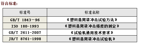 用已知能量的擺錘一次沖擊支撐成垂直懸臂梁的試樣,測量試樣破壞時(shí)所吸收的能量,沖擊線到試樣夾具為固定距離,對于缺口試樣,沖擊線到缺口中心線為固定距離。試驗(yàn)機(jī)應(yīng)為擺錘式,并由擺錘、試樣支座、能量指示機(jī)構(gòu)和機(jī)體等主要構(gòu)件組成,能示試樣破壞過程中所吸收的沖擊能量。