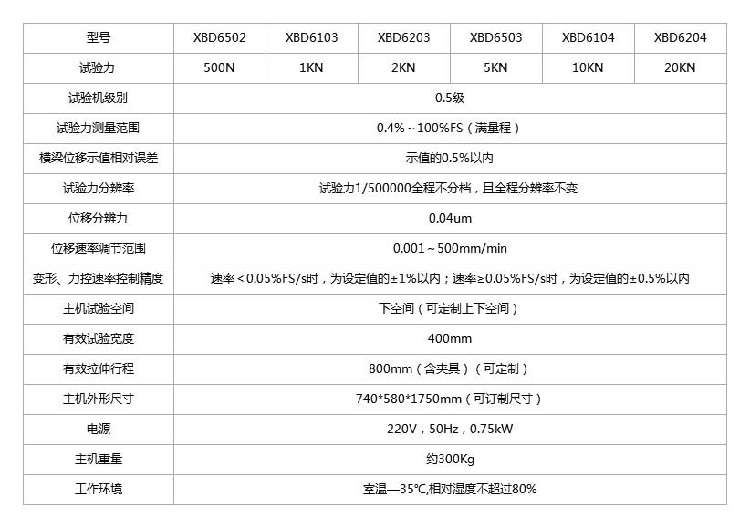 XBD6000系列微機控制電子萬能試驗機為機電一體化產品,主要由主機(包括機架、底座、傳動系統)、夾具、變形測量系統、軟件系統、電氣系統構成。